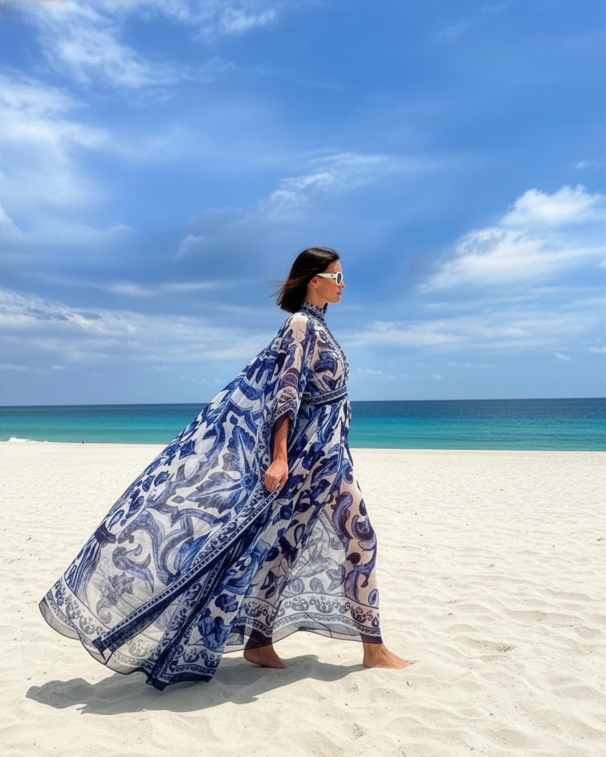Embrace effortless elegance with this Italian majolica-inspired oversized kaftan. Featuring a striking hand-painted print that evokes Mediterranean charm, this resort essential drapes beautifully with a flowing cape silhouette and adjustable tie-up neckline. Perfect for beach getaways, poolside lounging, or casual summer evenings, the generous cut ensures comfort and movement. Lightweight and breathable, it transitions seamlessly from day to night wear. A statement piece that celebrates artisanal design and timeless style.