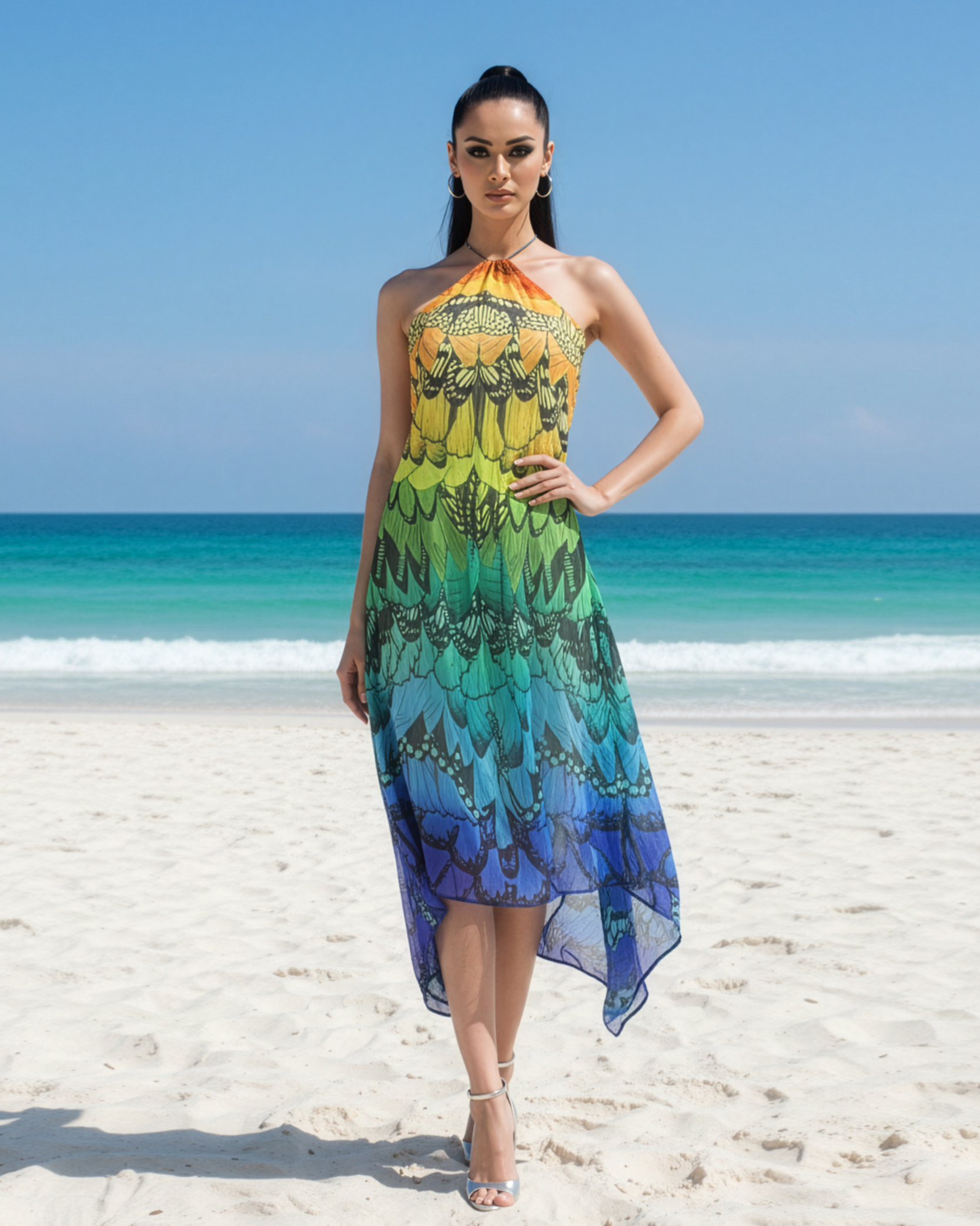 Embody elegance and sophistication with our in-house custom designed Scarlet Macaw Halter Cover Up. Featuring a sheer halter design, it's perfect for layering over slip dresses or bikinis, creating a beautiful resort look. Our exclusive scarlet macaw print adds a touch of artistry to your wardrobe.