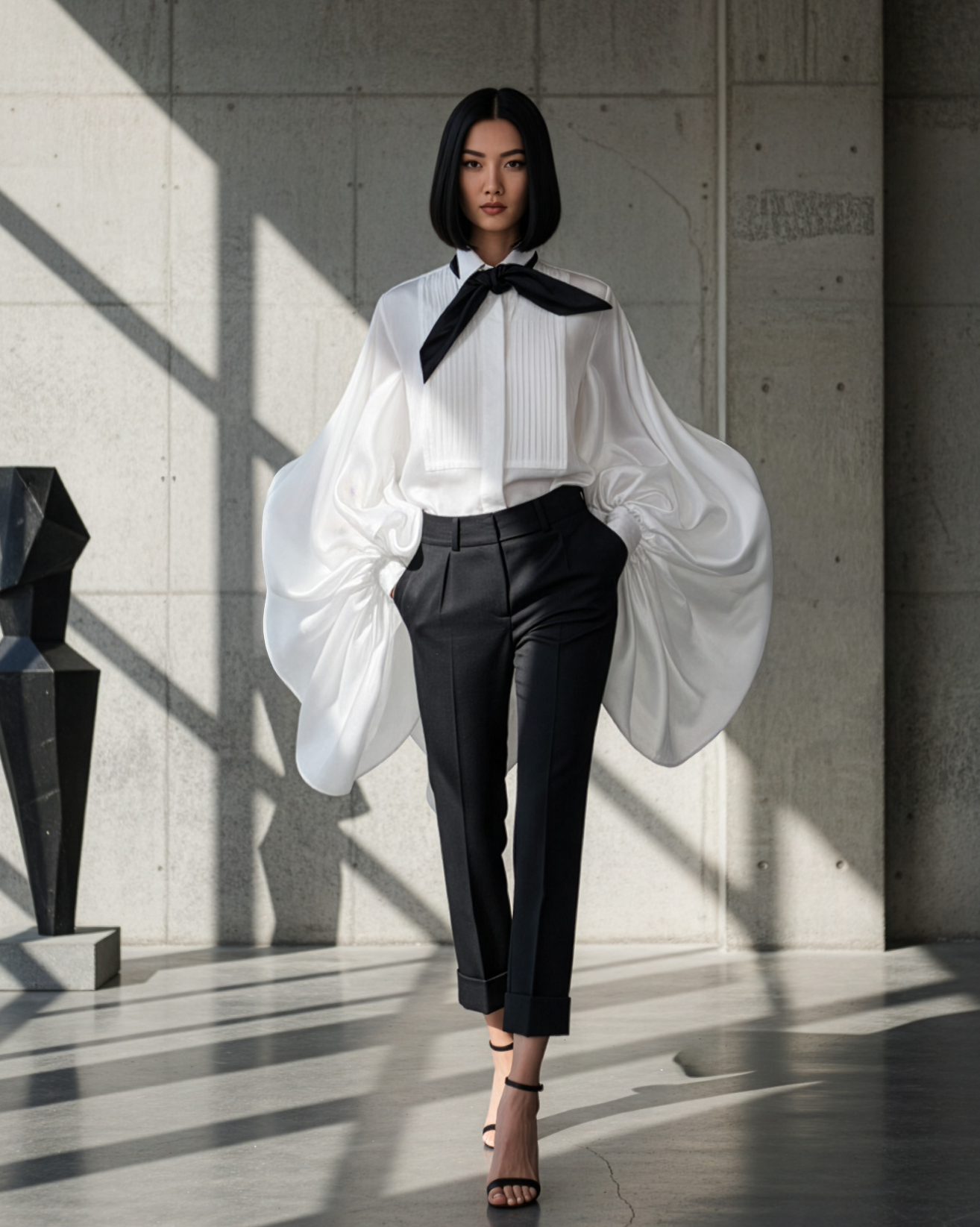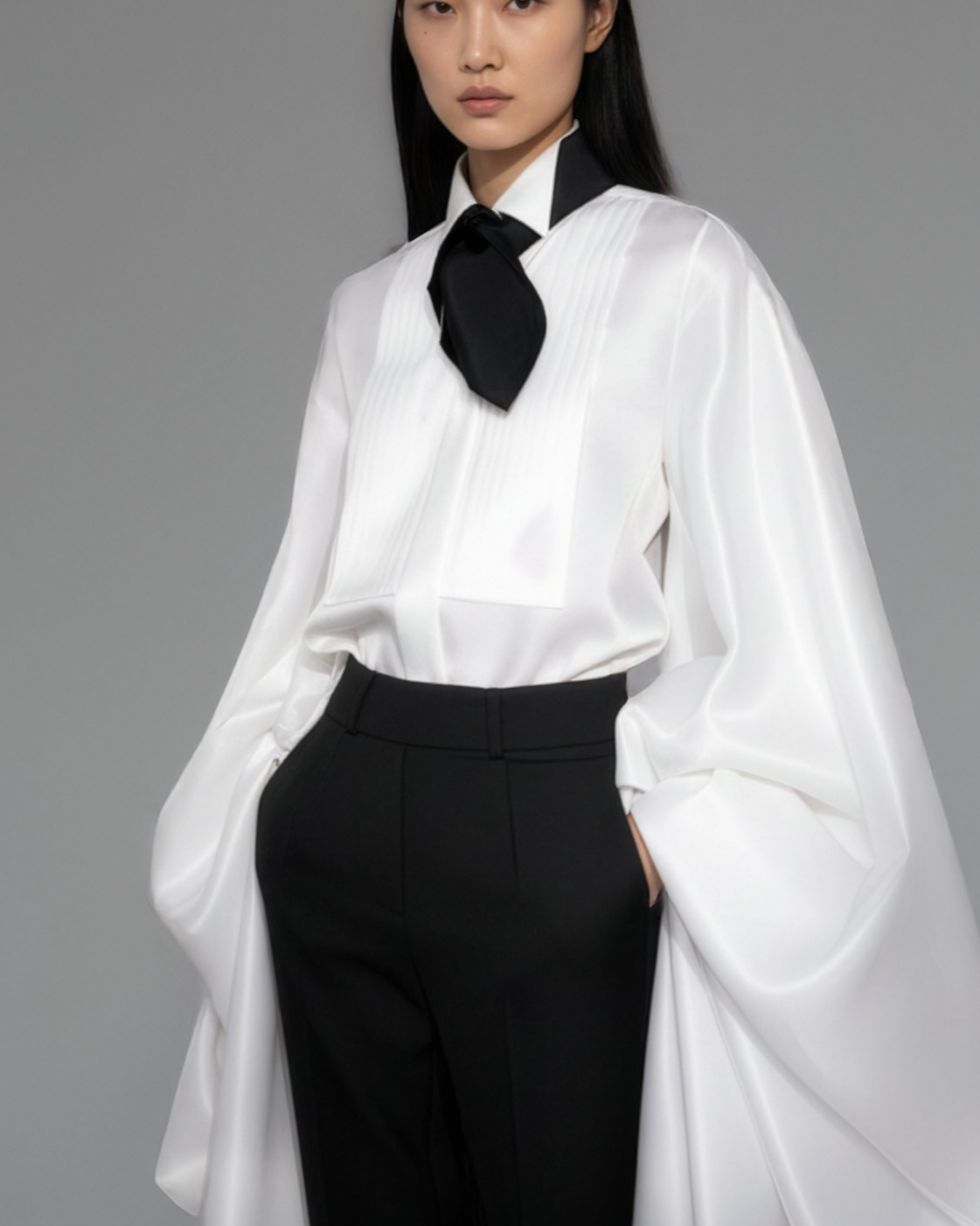 Elevate your style with our White Exaggerated Balloon Top Luxe. The vintage pleated front and black bow accent add a touch of sophistication while the exaggerated balloon sleeves make a statement. Embrace the luxury and stand out from the crowd.
