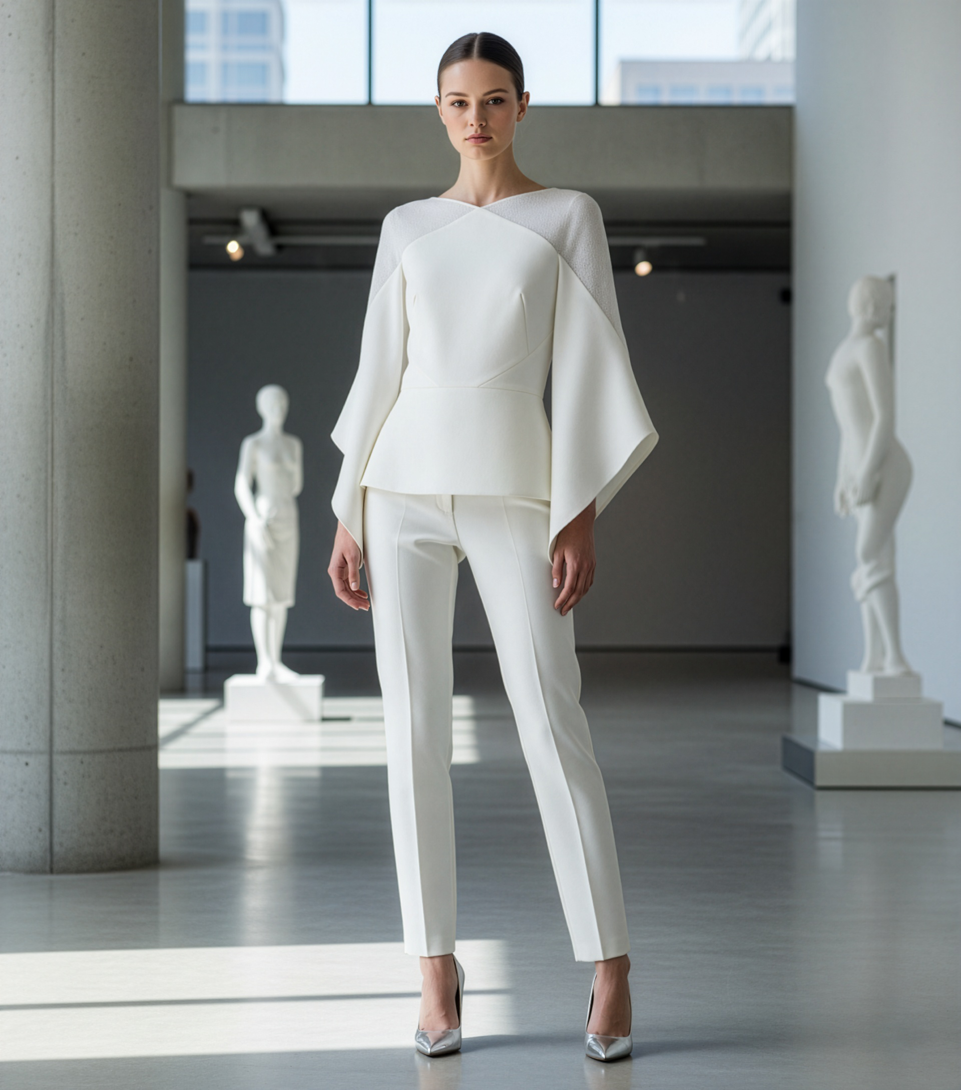 This elevated take on the classic sheer top features skillfully panelled shoulder cut-outs and luxuriously flowing cape sleeves for an ethereal look that exudes elegance and sophistication. A perfect juxtaposition of classic and contemporary, this timeless piece adds a touch of luxury to any wardrobe.
